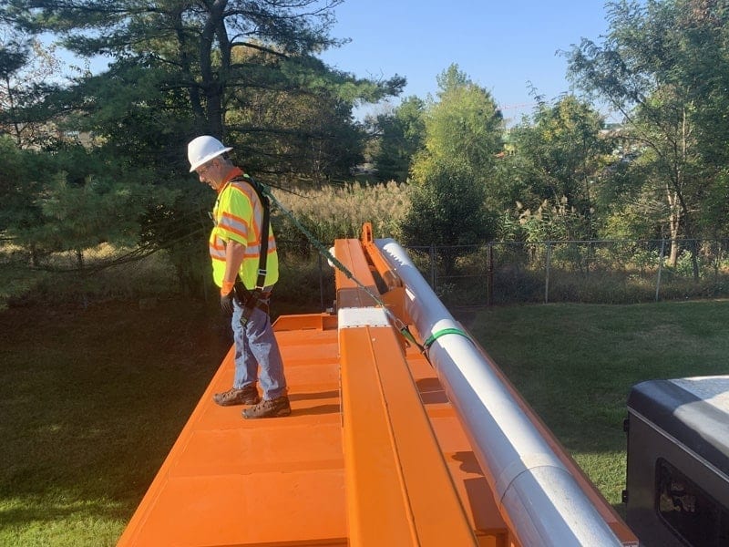 The Buckingham Ratchet Boom Strap is designed to be used when your aerial boom truck has no anchor point, or your anchor point is in an inconvenient location. It can also be used as a tie-off point when you are inspecting the boom, cleaning, or clearing snow off the top of the trucks.