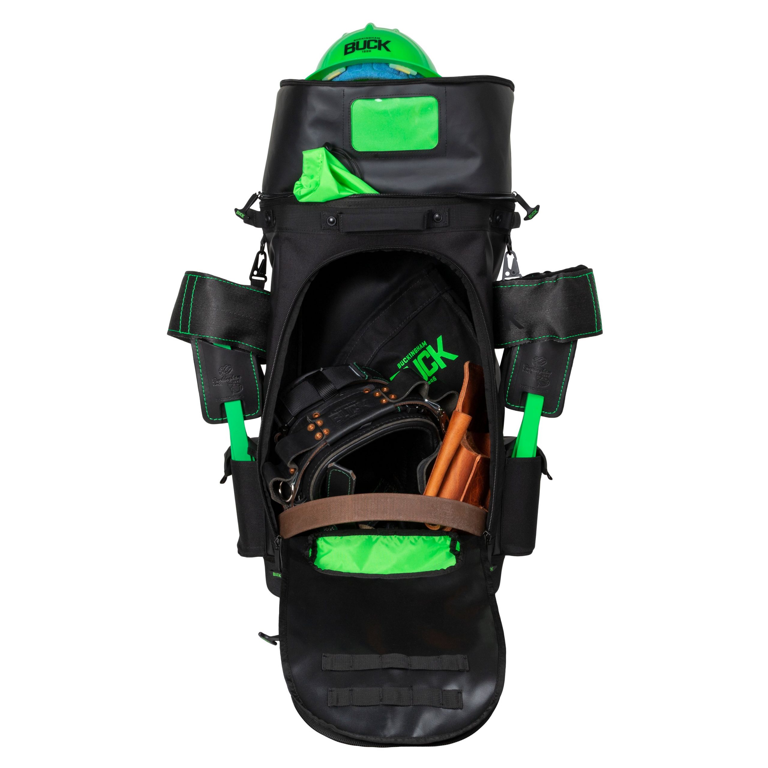 Constructed from a heavy-duty waterproof vinyl and Cordura material throughout, the BuckPack Pro features a removable separator if you want to keep clothing/gear away from other gear that may be dirty. High-grade zippers throughout for easy access and a name tag/company tag pocket. The backpack shoulder straps can be packed away into a separate storage pocket in the back pad when not in use. The back pad pocket is also great storage for handsaws, laptops, paperwork/binders/folders, etc.
