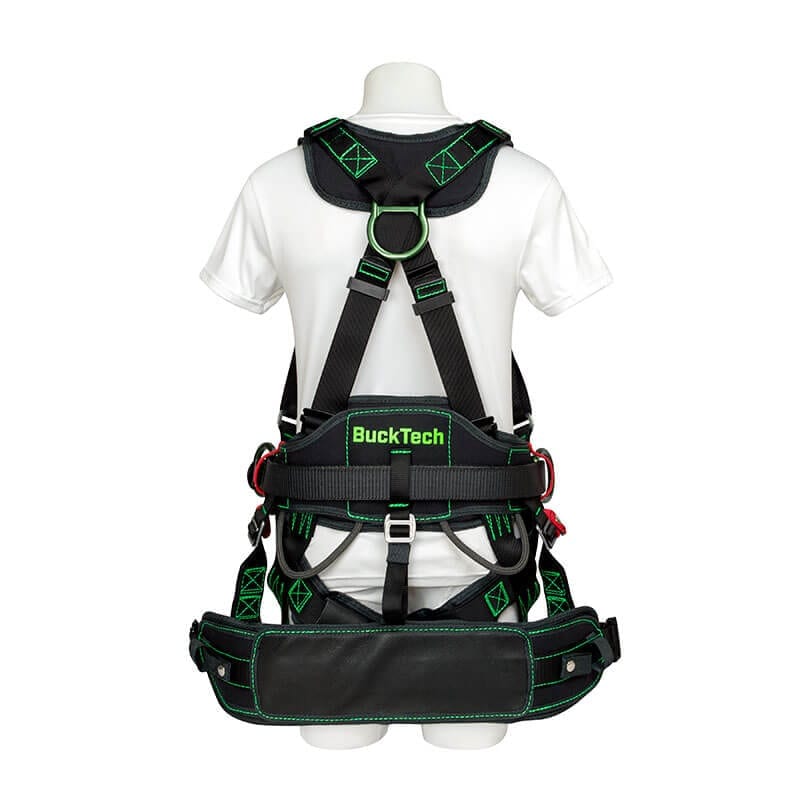 Buckinghamâs popular BuckTech⢠FR harness has been given a makeover, not only does the BuckTech⢠have a new look but we put substantial time into redesigning the seat to make it more comfortable and easier to change out from the original version. Weighing in at approximately 8 lbs and loaded with features. The BuckTech⢠is taking tower safety to the next level.