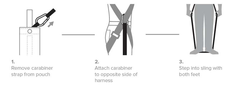 The BuckStep™ Suspension Trauma Rescue System was made for any sized user and can be used either right-handed or left-handed. This product allows a victim to immediately deploy a body support system that allows for improved blood circulation and the ability to move and flex muscles until rescue. Weighing only 3.5oz, the BuckStep™ Suspension Trauma System is compact and easy to mount and attaches to a full-body harness.