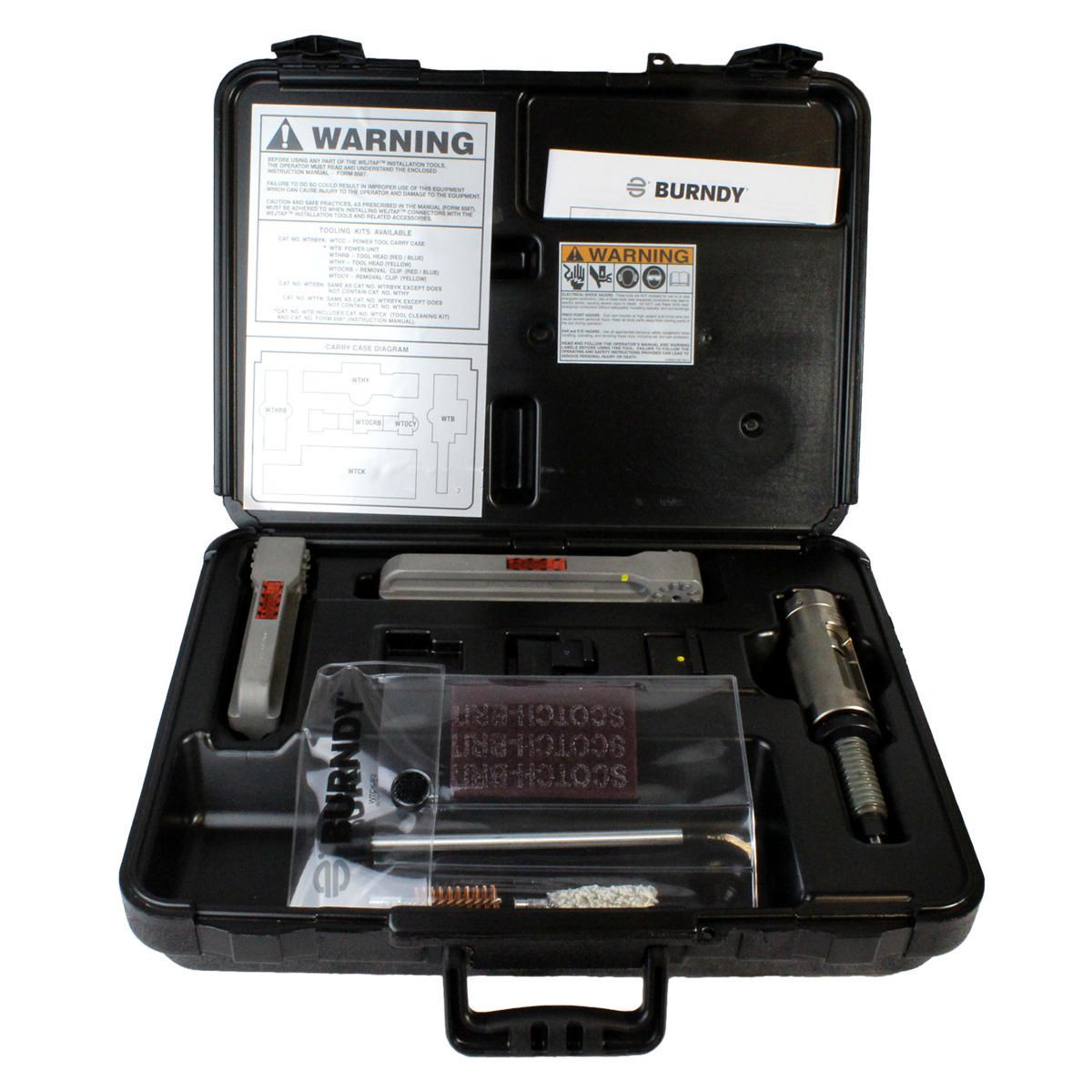 WEJTAP™ Power Unit, Large (Yellow) Frame/Removal Clip, Small (Red/Blue) Frame/Removal Clip, Cleaning Kit, and Carry Case.