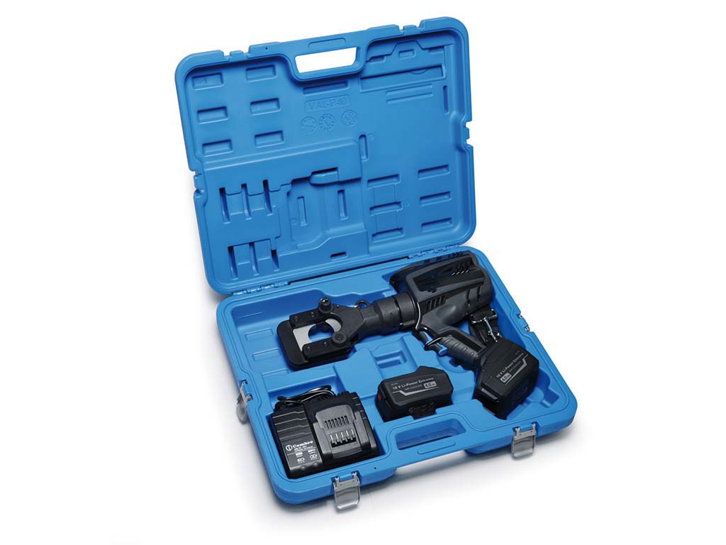 Next generation of 18.0 V cordless hydraulic cutting tool specifically designed to cut Copper, aldrey, Aluminum, Aluminum-Steel cables and Steel ropes, Aluminum and Steel rods having a max overall diameter of 1-3/4 in.