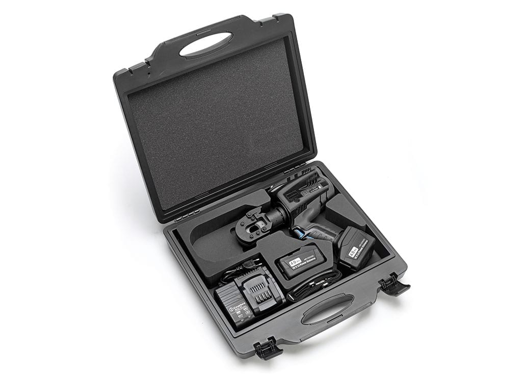 Next generation of 18.0 V cordless hydraulic cutting tool specifically designed cut copper, aldrey, aluminum, aluminum-steel cables, steel ropes having a max overall diameter of 1”, guy wire up to 7/8” and steel ground rod up to 5/8”.