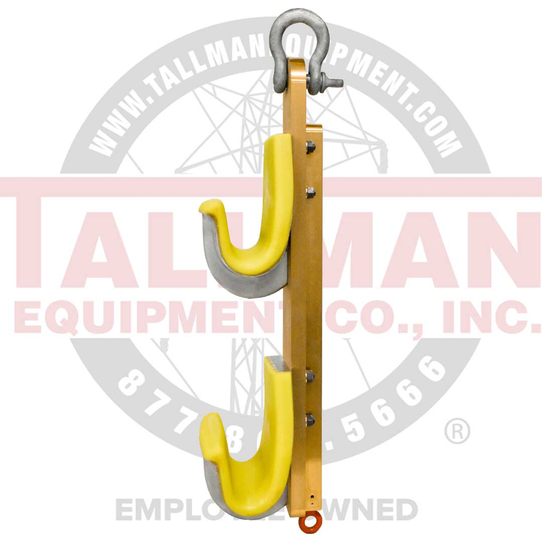 The DDIN Vertical Bundle Clipping Hook is designed to safely lift 2 bundle conductor into position while clipping in. The hooks are urethane lined and have a capacity of 1.762″ (Bluebird). They are spaced 18″ apart. Includes a shotgun eye attachment for added positioning of the conductor.