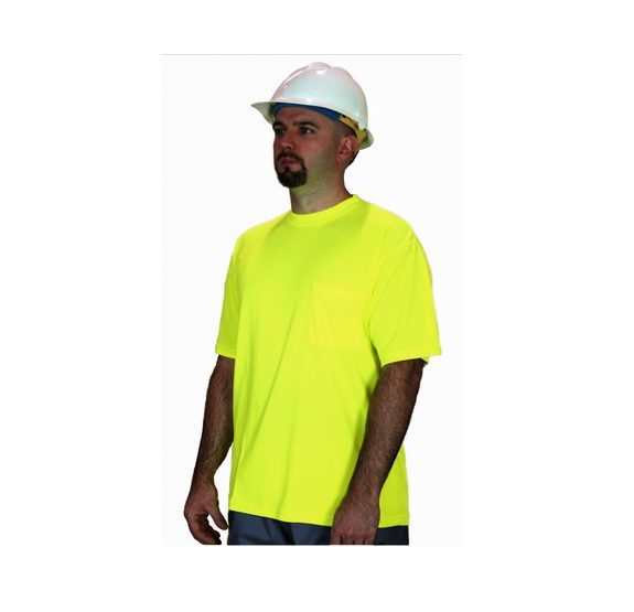 All t-shirts are made of comfortable wicking polyester fabric. T-shirts with stripes meet current ANSI 107-2010 Class 2 specifications.