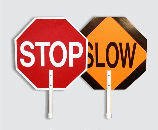 Rigid plastic stop/slow paddles are available in both 18″ and 24″ octagon versions with reflective and non-reflective surfaces. All rigid paddles come with a 12″ ABS plastic handle attached. Meets all MUTCD specifications.