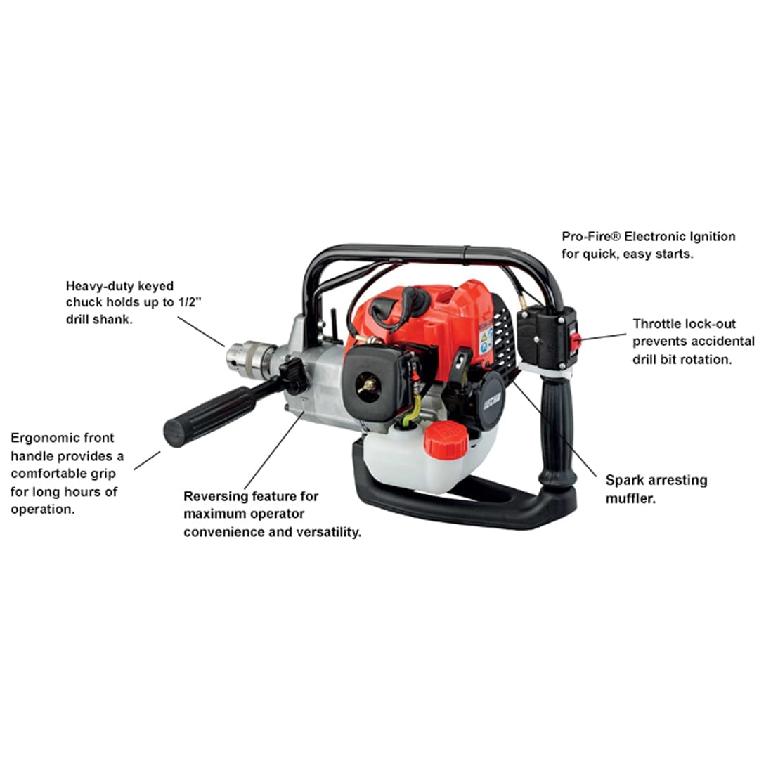- Heavy-duty gear reduction converts engine power into tough drilling torque
