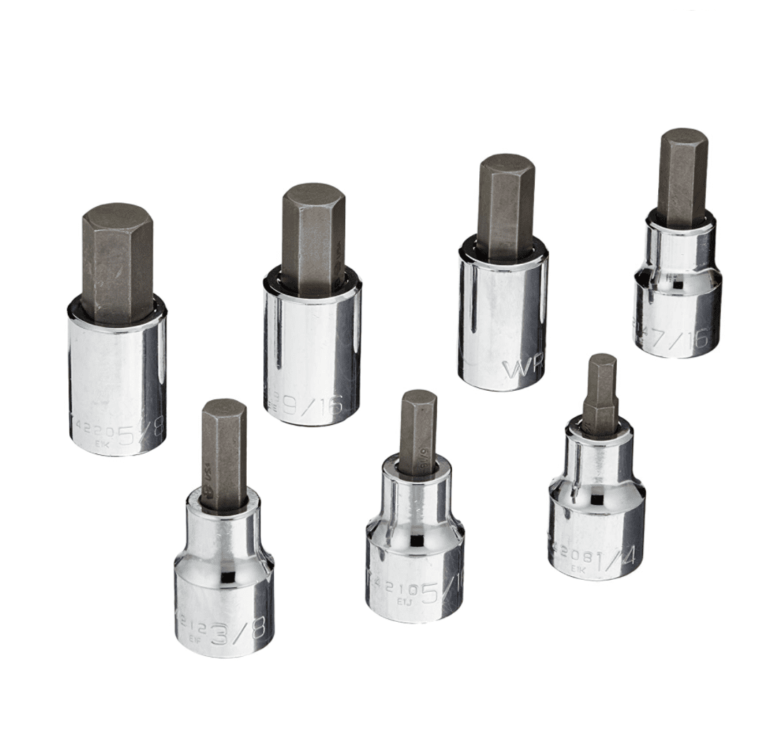Wright Tool 405 1/2″” Drive 1/4″-5/8″ 7 Piece SAE Hex Bit Hand Socket Set