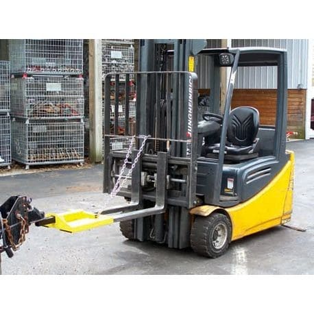 With 1-7/8″ ball the operator can safely and easily move trailers and other equipment with just a forklift. The adapter slides onto the existing forks and can accommodate ball, pintle, or combination hitches. Trailer hitch, ball, and chain included. maximum Fork Size: 1 3/4″ H x 5 5/8” W