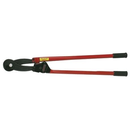The H.K. Porter 36-inch wire rope ratchet cutter has notched shear-cut blades that hold material firmly in place throughout the cut. This cutter is designed to cut aircraft cable, EHS guy strand, wire rope and stainless steel cable. Shear-cut blades make a smooth and clean cut with minimal crushing or distortion.