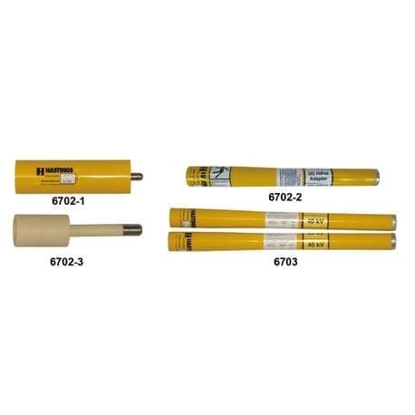 One 15/25kV Load Break Bushing Adapter, One D.C. Hi-Pot adapter for up to 35kV, One 35kV Loadbreak Bushing Adapter, Pair of extension resistors for use with digital phasing tester model 6702