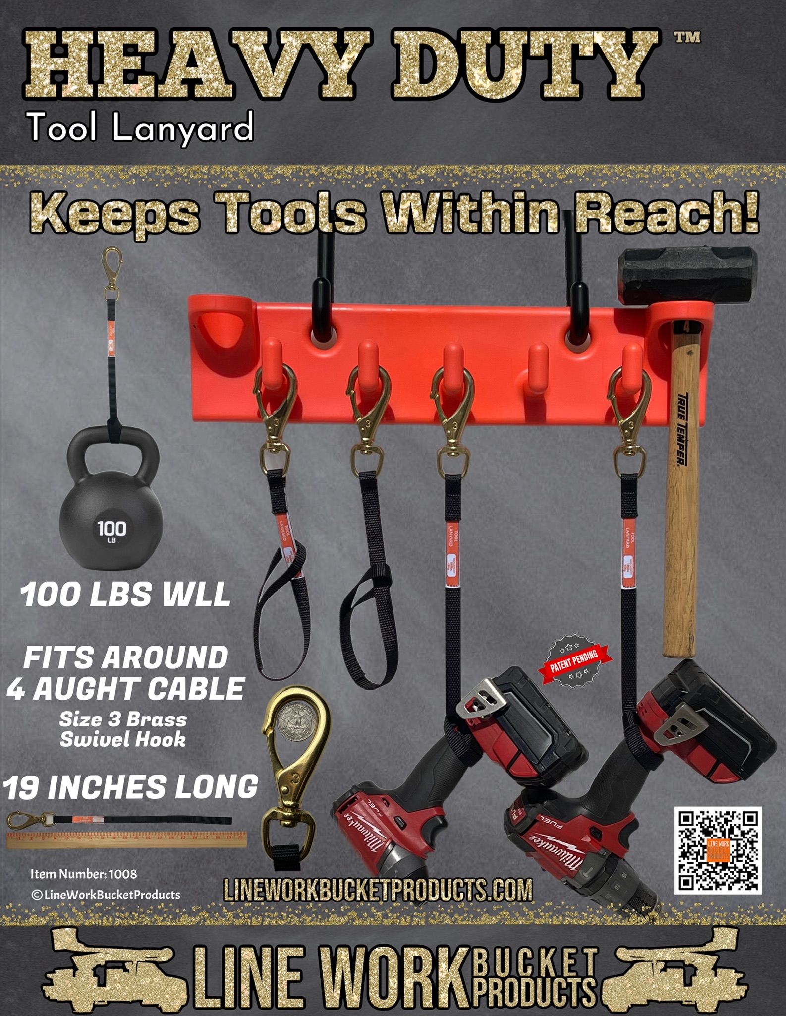 Keep tools within reach with the Heavy Duty Tool Lanyard from Line Work Bucket Products. Designed by Utility Linemen for Utility Linemen.