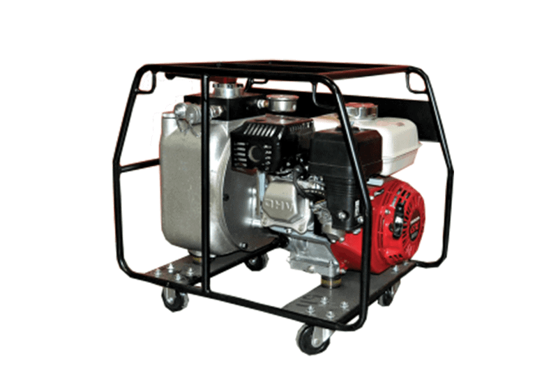 Self-contained high-pressure hydraulic pump, with manual operation. It is equipped with a 5.5 HP Honda engine. A four-way valve controls the hydraulic fluid direction for the advance and retracts modes. One, double-acting tool can be operated or two, single-acting tools at one time. Connection to one port for single acting tools will work since the control valve will dump the fluid when shifted to the neutral position. The pump is very compact and comes with a carrying case.
