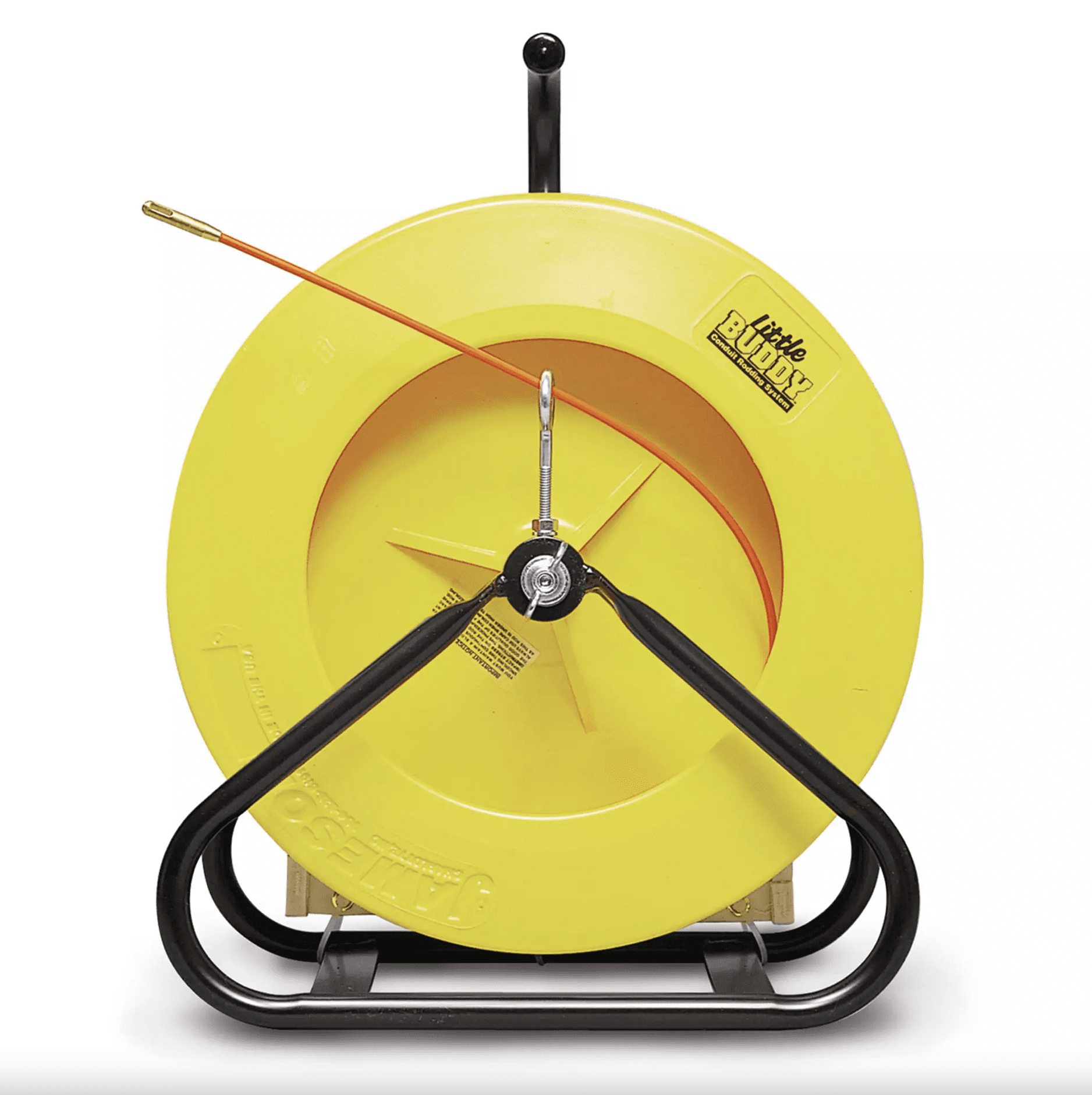 Little Buddy® Fish Tape is a lightweight, portable unit handles a variety of jobs, easily fishing conduit 3/4″ to 1-1/2″. Typically used for running inside and outside conduit drops as well as home drops from the hand-hole box to a building, some technicians use it for light pole and control wiring or walker ducts. 3/16″ O.D. fiberglass rod, 2-1/2″ bending radius, 200 lb. pull/tensile strength, accessory kit included. Dimensions: 22″ x 17″ x 7″.