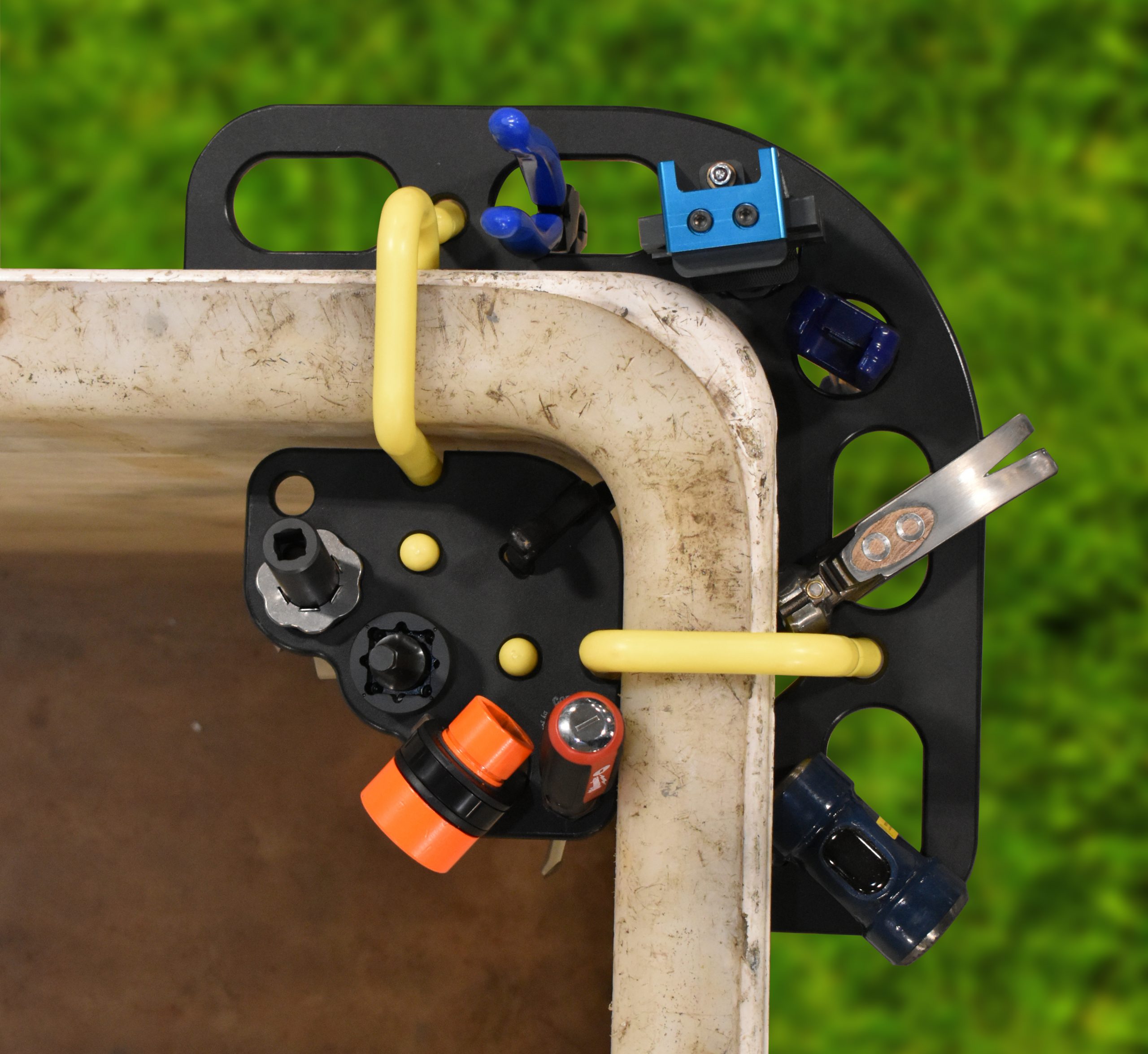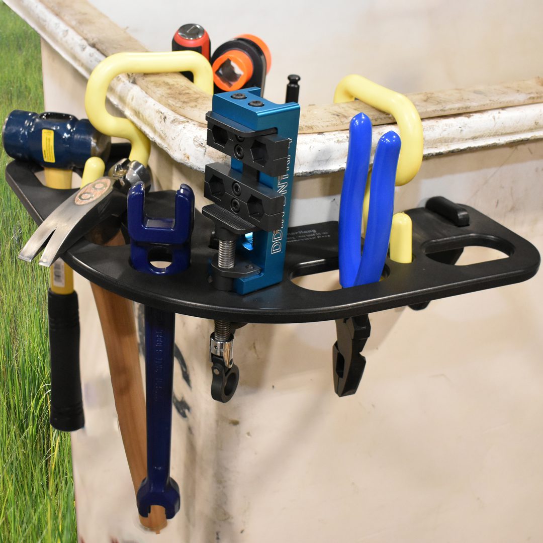 The Boomerhang from Journeyman Gear is designed to hang around the corners of your aerial bucket and will securely hold the most common tools used by linemen. The innovative storage solution works together with the CornerPocket to form a space efficient tool organization system.