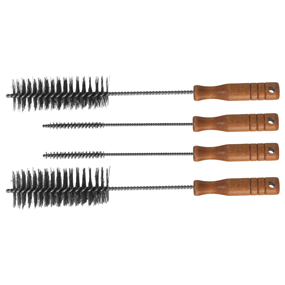 - Set of four wire-bristle brushes designed for cleaning Klein wire- and cable-pulling grips
