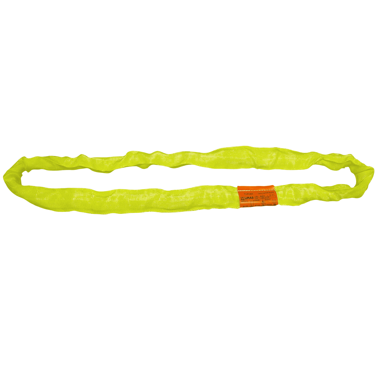 Lift-All Tuflex roundsling is an endless synthetic sling made from a skein of polyester yarn covered by a double-wall tubular jacket. The roundsling body can be compared to sling webbing with the tubular jacket face yarns woven without binder yarns. This allows the core yarns to move independently within the jacket.