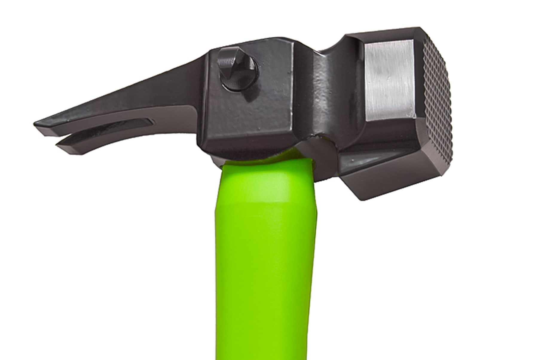 The 32-ounce head includes a small side hook for removing J-hooks and staples and the fiberglass non-conductive handle is long enough for two hands if needed.