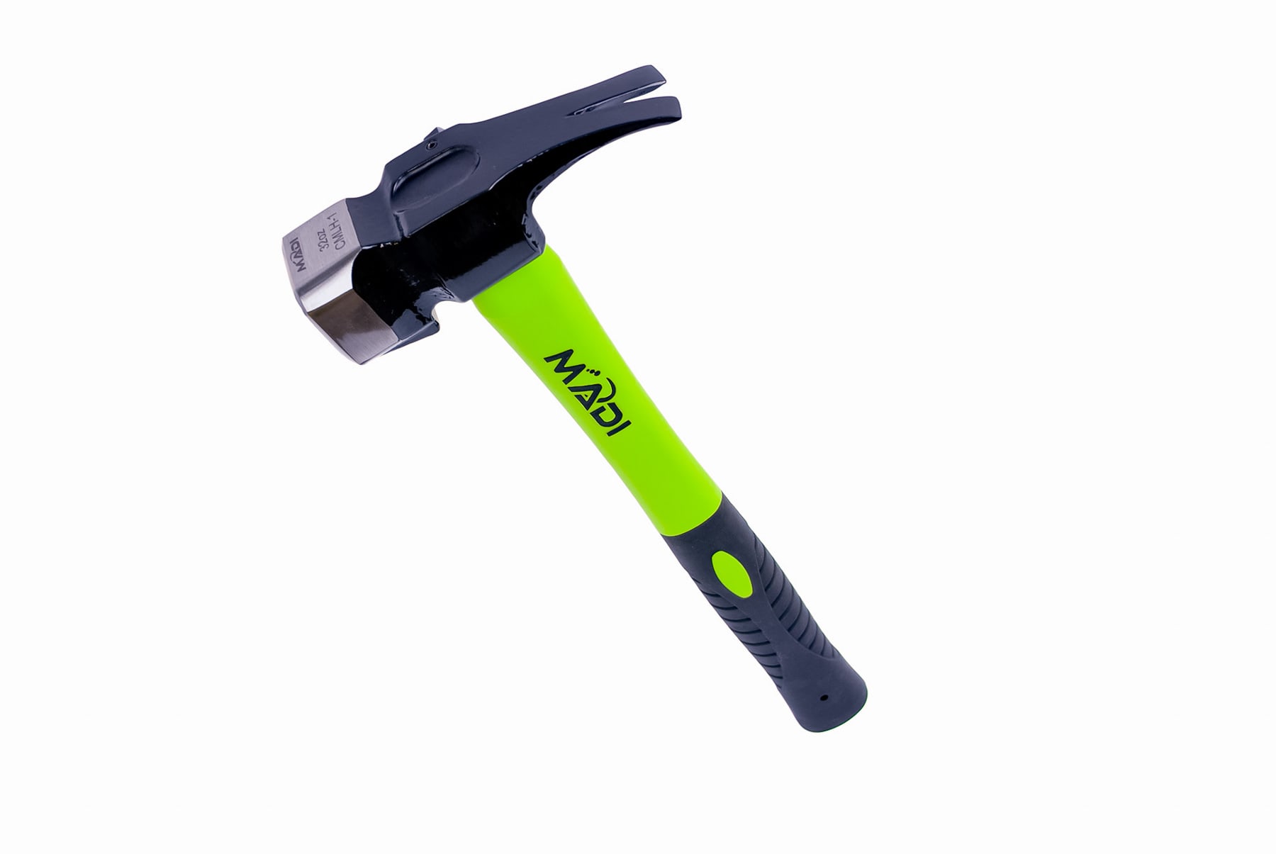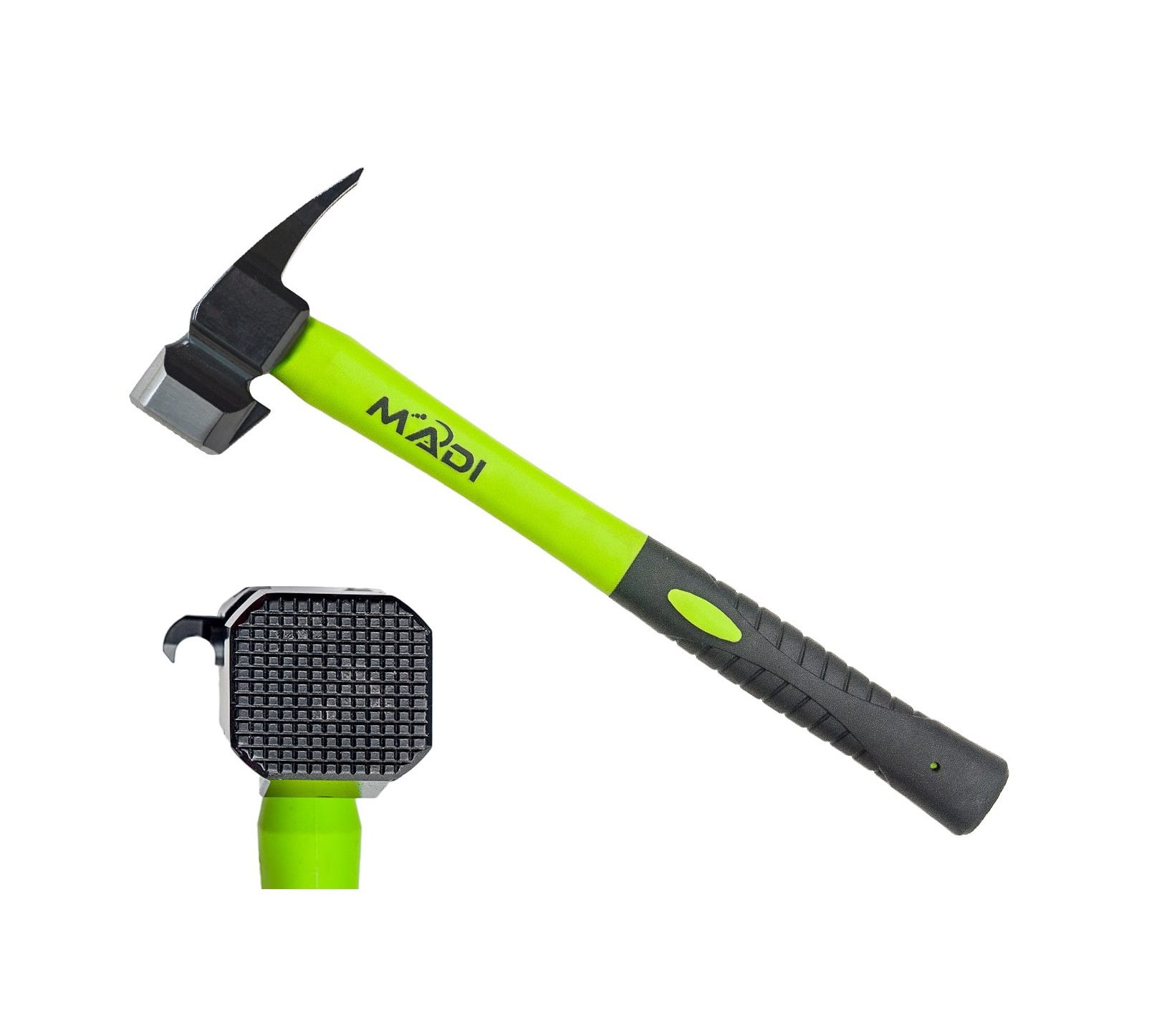 Large milled-face head for driving lag screws and J hooks, this new Madi hammer features a claw end that’s perfect for removing ground wire and molding.