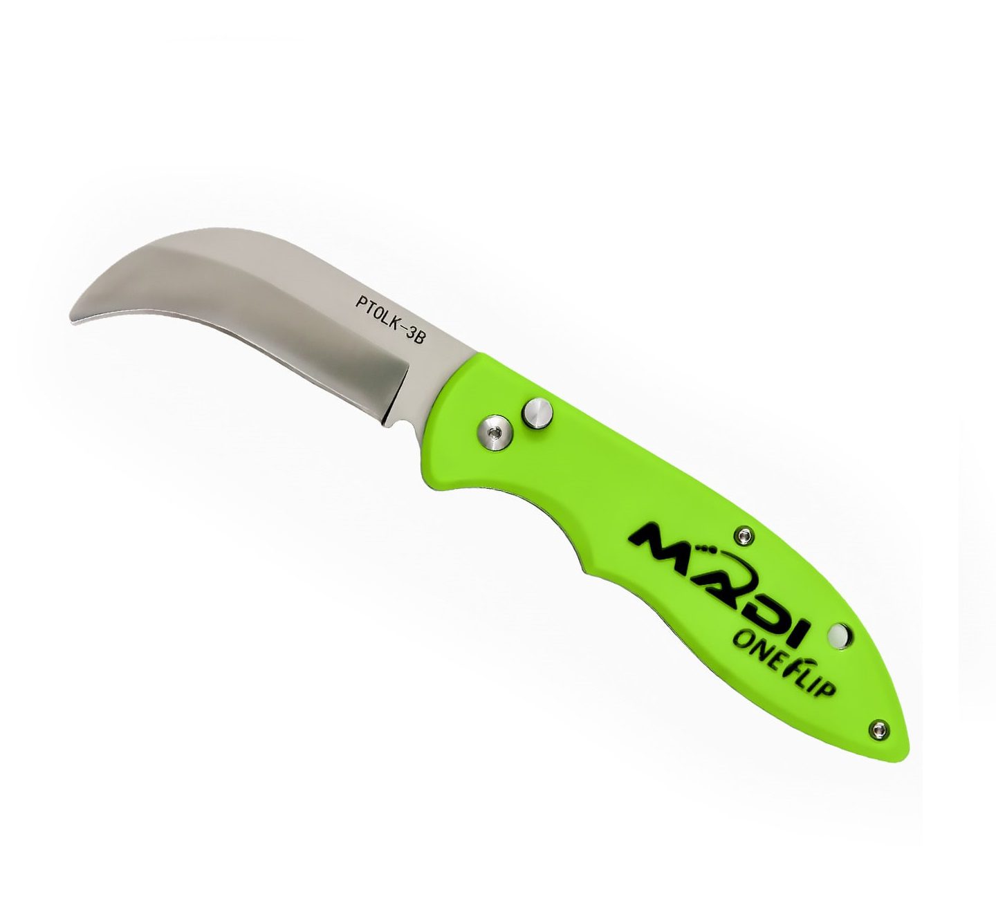 The MADI One Flip Lineman’s knife is a one-hand opening pocket knife with a blunted tip.