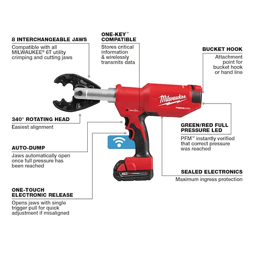 The M18™ FORCE LOGIC™ 6T Pistol Utility Crimper is The Easiest Way To Crimp Overhead. As the lightest, most balanced 6-ton pistol crimper, it provides linemen the easiest alignment when making connections at shoulder height or above.