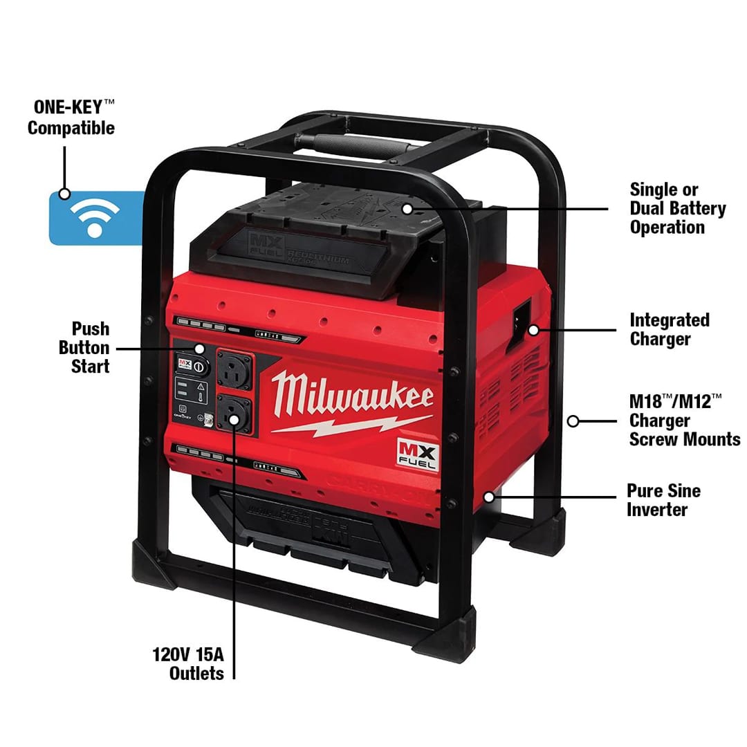 The MX FUEL™ CARRY-ON™ 3600W/1800W Power Supply can sequentially charge a CP203 battery in 45 minutes and an XC406 battery in 90 minutes. It is compatible with all MILWAUKEE® MX FUEL™ REDLITHIUM™ batteries giving you the hardest working and most reliable power for equipment. REDLINK PLUS INTELLIGENCE™ ensures maximum performance and protection from overload, overheating, and over-discharge.