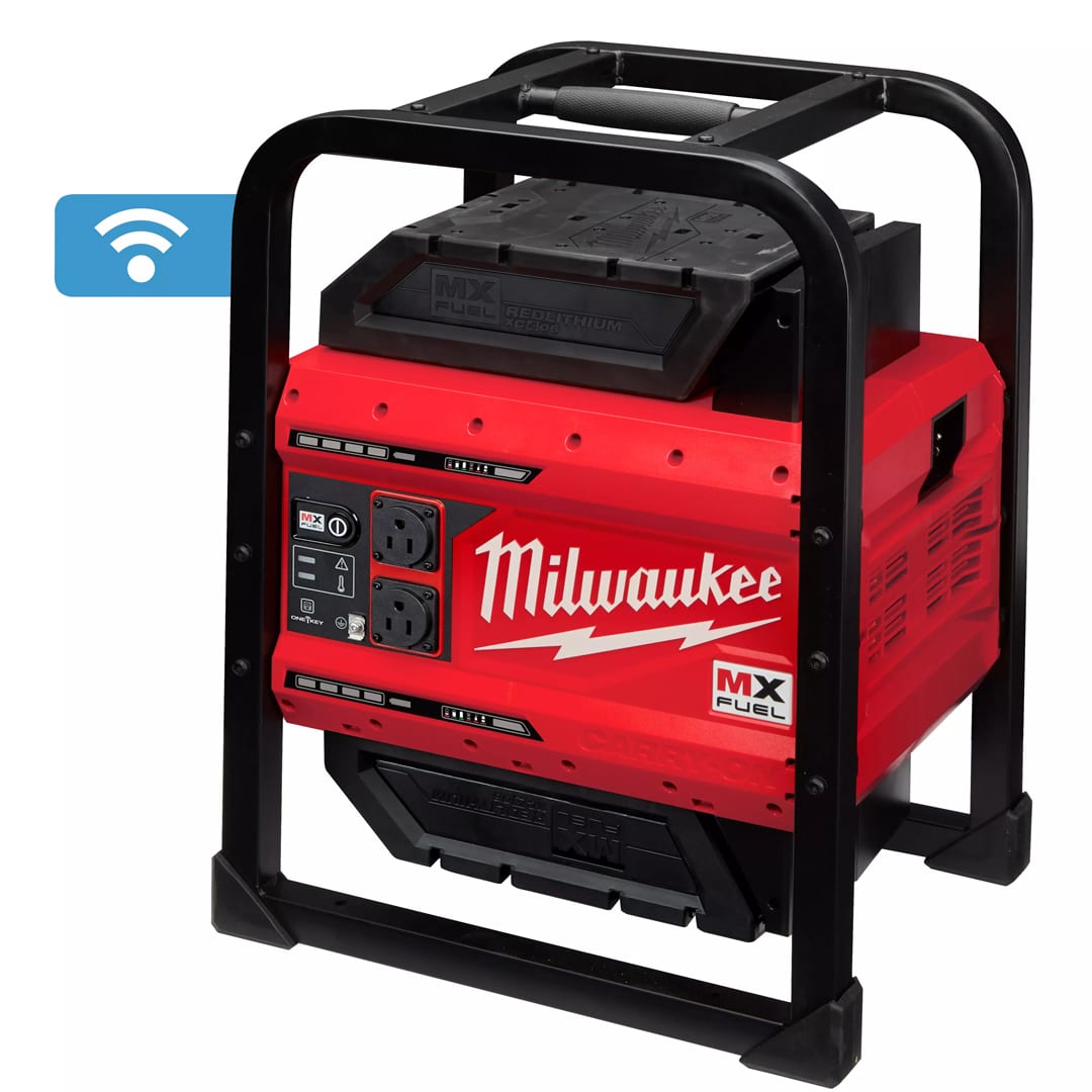 The Milwaukee MX FUEL™ CARRY-ON™ 3600W/1800W Power Supply provides the best temporary power for the job. You can power more on-demand with efficient, quiet, and portable power anywhere. The portable power supply provides 3600 peak watts, 1800 continuous watts of pure sine inverter energy, powering everything from your high-demand 15A tools to sensitive electronics.