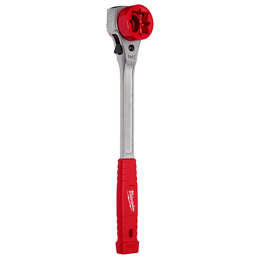 The Lineman’s High-Leverage Ratcheting Wrench features the most durable ratchet. The ratcheting wrench has a built-in strike face available in both milled and smooth, providing you with a dedicated surface for hammering. This MILWAUKEE® ratchet wrench also has a large directional switch that you can easily press while wearing gloves. These wrenches are constructed from durable forged steel for longer tool life. The high leverage wrench fits 3/4″, 1″, and 1-1/8″ square hardware.
