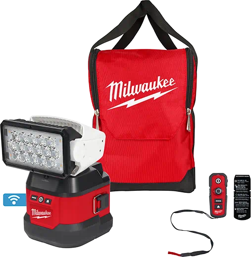 The MILWAUKEE® Utility Remote Control Search Light is weather-resistant to survive outdoor use. The LEDs never need to be replaced with a 5-year tool warranty and a Limited Lifetime LED Warranty.