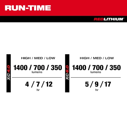- Over 4 Hours of Run-time on HIGH with an M12™ XC4.0 Battery