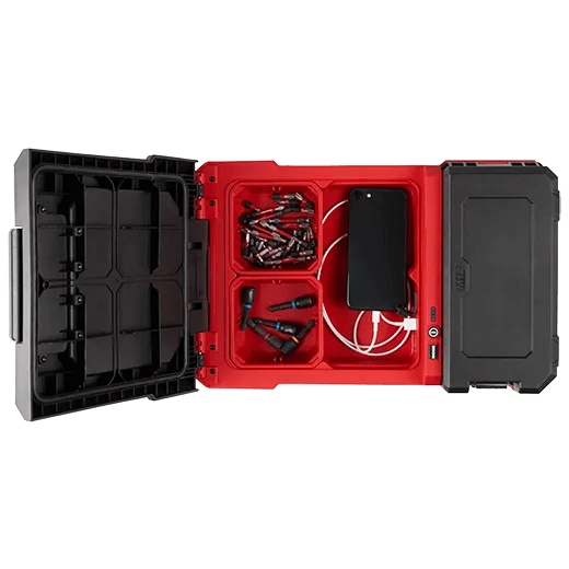 The light head can rotate 300 degrees horizontally and 180 degrees vertically for complete light head control. With three different modes (high, medium, low) output and runtime can be adjusted depending on the job, with up to 12 hours of runtime on a M12™ XC 4.0 battery pack. Also included in this light is built-in storage with two storage containers to optimize space and organization. The PACKOUT™ Light allows you to charge devices with the 2.1AMP USB-A and USB-C ports whiles storing small items inside the storage compartment. Built to withstand the toughest conditions this light is IP54, drop-rated, and covered with a 5-year tool and limited LED warranty.