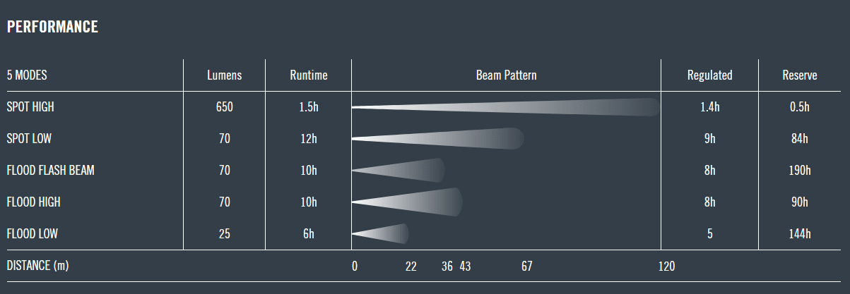The pinnacle of waterproof LED headlamp design, the Apex incorporates a single regulated Maxbright LED plus four regulated Ultrabright LEDs. The Apex is capable of a powerful spot beam or a bright flood, and two switches make changing modes intuitive.