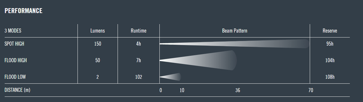 One Maxbright LED creates a powerful 150-lumen spot beam for long-throw illumination, while 4 Ultrabright LEDs deliver a dimmable flood beam. As with all of Princeton Tec Professional Series headlamps, the rugged Vizz II is waterproof.