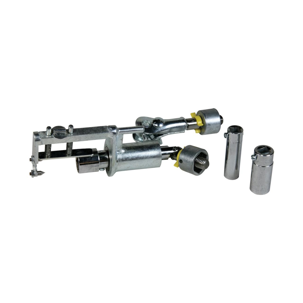 The Parallel Groove Clamp Tool accommodates cap-screw type clamps (one, two, and three-bolt types). The parallel groove tool head clamps can be installed from almost any angle by use of the universal ball clamp. The handles are fiberglass, with the operating handle having a diameter of 1” (2.5 cm) and the stationary handle 1-1/4” (3.2 cm).