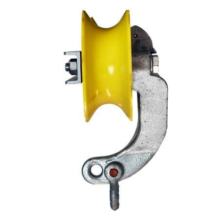 - Holds down the pulling line or conductor in order to combat the cable from rising out of the stringing block groove